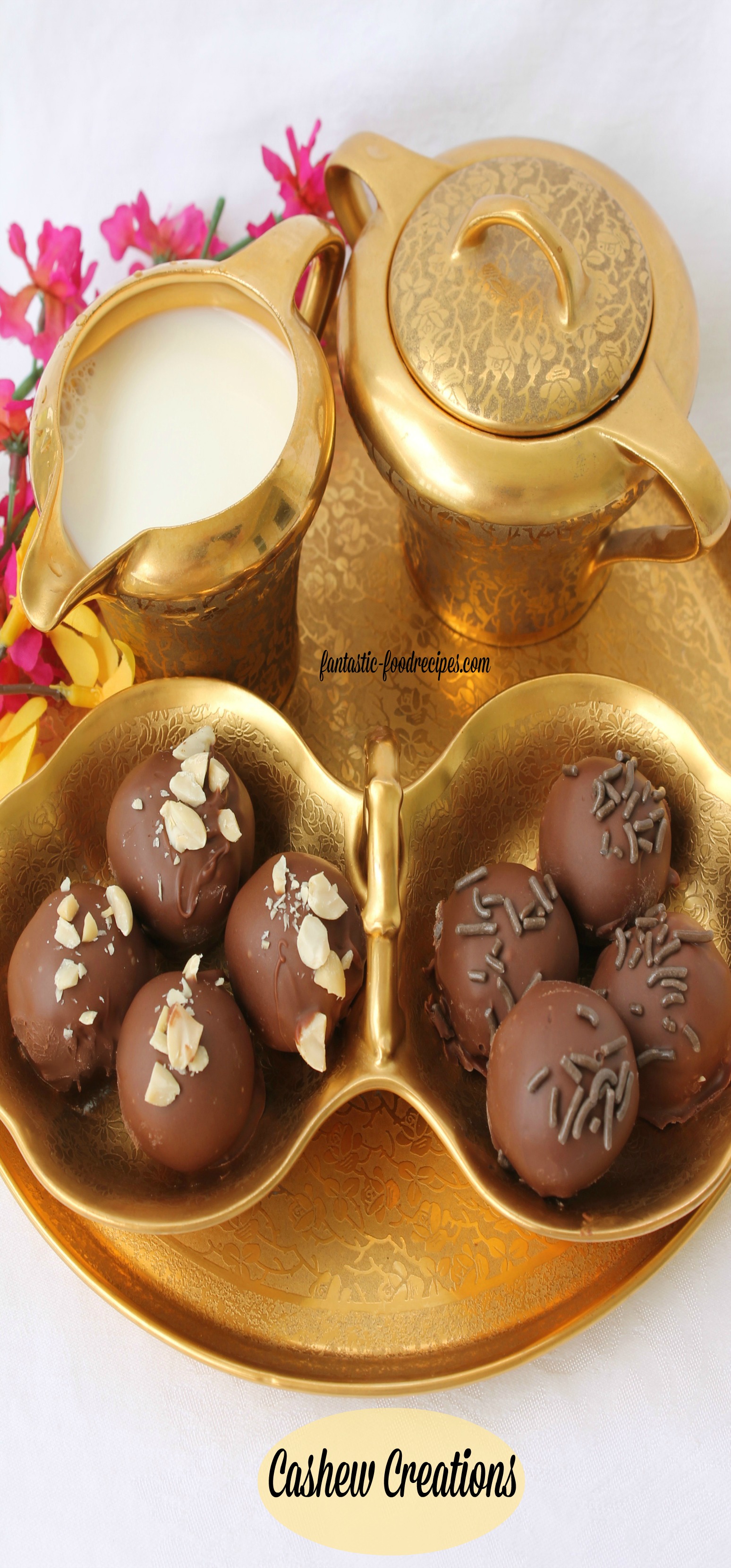 For an elegant treat that is sure to be admired, Cashew Confections are the perfect choice. A sweet and nutty filling is rolled into balls and dipped in dark or light chocolate, then topped with nuts or sprinkles.