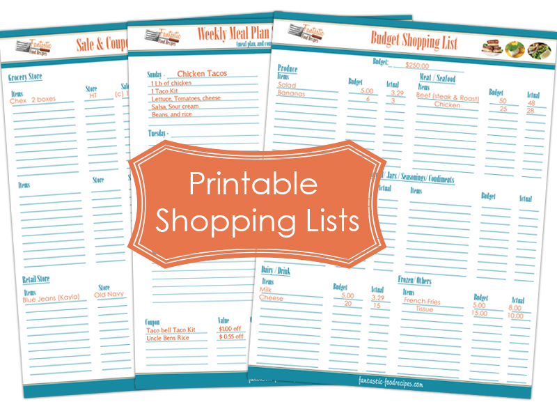 Printable shopping lists make things so much more easier. Here you will find free printable shopping lists that help you to plan your weekly meals. Not only that, you will also be able to print out grocery shopping lists, budget shopping lists, and even a sale and coupon shopping list. Simply click the blue link to download any or all of your free printable shopping lists.