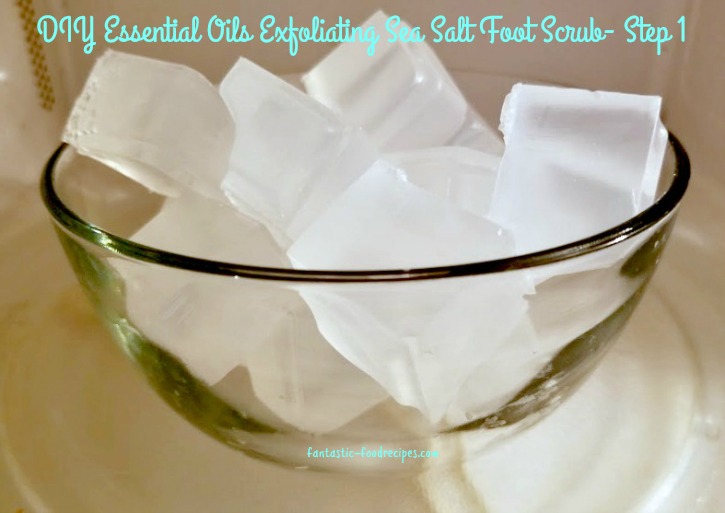 Step 1. Cut the soap base into squares and place into a microwave safe bowl. Heat at 30 second intervals until melted.